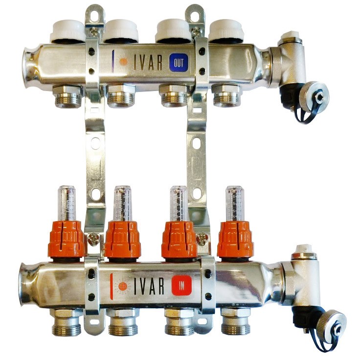 Коллектор с корпусом из нержавеющей стали, предназначен для распределения и контроля потоков воды или теплоносителя в отопительных системах, например в системе тёплый пол. Каждый коллектор проходит заводскую опрессовку , что является гарантией от производителя.