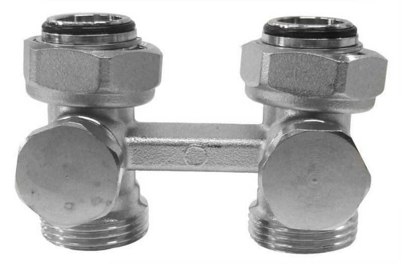 Прямой узел нижнего подключения IVAR с функцией перекрытия без байпаса. Максимальное давление: 10 бар. Максимальная температура: 110° С. Используется в двухтрубных системах отопления.