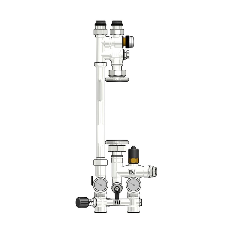 Группа быстрого монтажа IVAR (Италия) изготовлена из высококачественной нержавеющей стали. Предназначена для распределения теплоносителя с подмесом в системах отопления теплым полом. Поставляется без изоляции. Может комплектоваться насосами 130 мм с присоединительной резьбой 1" (в комплект не входит). Имеет в комплекте защитный термостат насоса. Термостатическая головка с погружным датчиком в комплект НЕ ВХОДИТ.