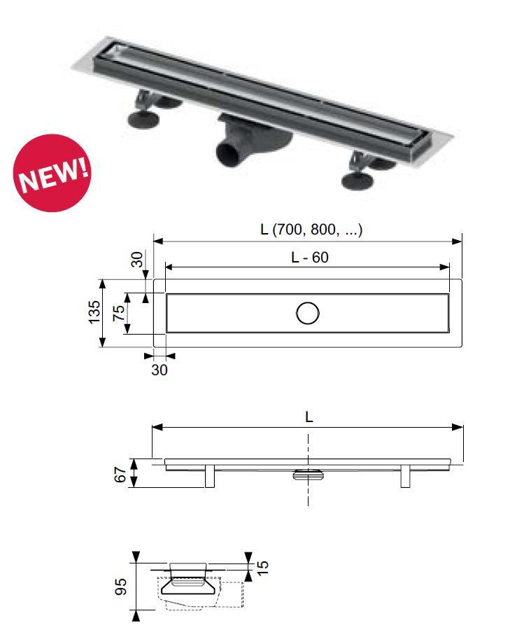 | Тип узла | Комплект ТЕСЕlinus для монтажа дренажного канала с основой для плитки "tile" |