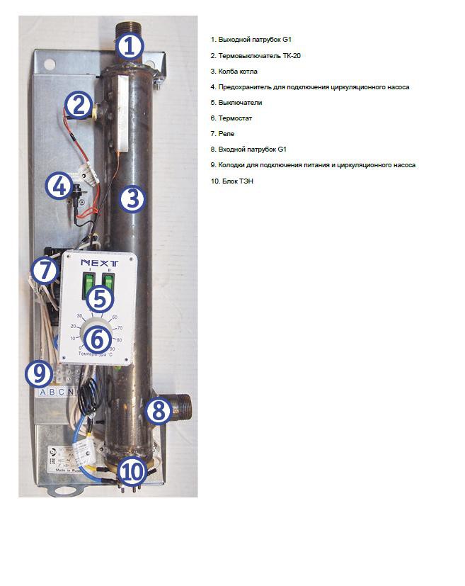 Для обеспечения безопасности при нагреве до заданной температуры теплоносителя терморегулятор отключает котел и включает его снова после снижения температуры ниже заданной. Для дополнительной защиты от перегрева приборы оснащены самовозвратным аварийным термовыключателем, который, в случае выхода из строя основного терморегулятора отключает котел при достижении теплоносителем температуры 92 градуса.